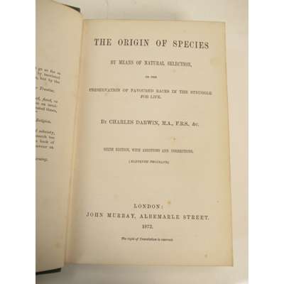 London: John Murray, 1872. Sixth edition (eleventh thousand), 8vo, half-title, folding diagram, chocolate brown endpapers, original green blindstamped cloth, lettered in gilt to spine, a little soiling and rubbing to covers, hinges splitting, a few internal foxing spots which are more severe to endpapers
