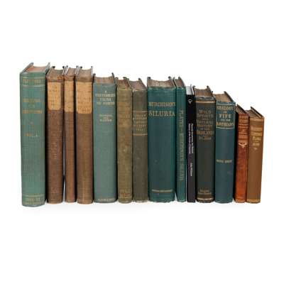 Deering, C. Catalogus Stirpium, &c. or, a Catalogue of Plants Naturally growing...more especially about Nottingham. Nottingham: C. Rivington, 1738. 8vo, later quarter calf, without additional dedication [ESTC T81028]; Johnston, George The Botany of the Eastern Borders... London: John van Voorst, 1853. 8vo, volume 1 (Botany) only, original green cloth gilt; MacLaren, Charles A Sketch of the Geology of Fife and the Lothians. Edinburgh: Adam and Charles Black, 1866. Second edition, 8vo, original green cloth gilt; Murchison, Sir Roderick I. Siluria. A History of the Oldest Rocks in the British Isles and Other Countries... London: John Murray, 1872. Fifth edition, 8vo, accompanied by the plate volume, original green cloth gilt; St. John, Charles Sketches of the Wild Sports & Natural History of the Highlands. London: John Murray, 1878. 8vo, original green cloth gilt; Hennedy, Roger The Clydesdale Flora. Glasgow: Hugh Hopkins, 1891. Fifth edition, 12mo, original brown cloth gilt, bookplate; Fleischer, Max Die Musci der Flora von Buitenzorg... Leiden: E.J. Brill, 1900-1902. 4 volumes, 8vo, 3 bound in contemporary quarter cloth and the last in modern green cloth gilt; The Annals of Scottish Natural History No. 45, January 1903. Edinburgh: David Douglas, 1903. 8vo, contemporary green cloth gilt, upper wrapper bound in; Rintoul, Leonora Jeffrey - Evelyn V. Baxter A Vertebrate Fauna of Forth. Edinburgh: Oliver and Boyd, 1935. 8vo, original green cloth gilt; Williams, John - John Edmondson, editor Faunula Grustensis, the Natural History of the Parish of Llanrwst. Cambridge Scholars Publishing, 2019. 8vo, original boards (14)