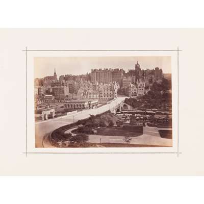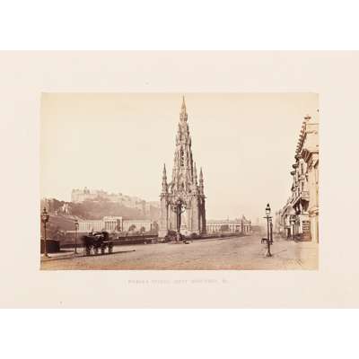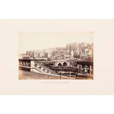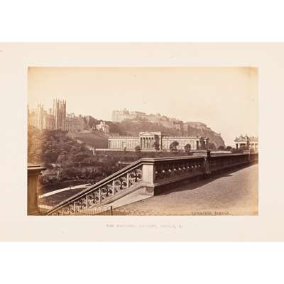 Photographs of Edinburgh. Glasgow: A. Duthie, [1868], 4to, 13 mounted photographs. original red cloth gilt, g.e.; Wilson, George W. Photographs of Scottish Scenery. Edinburgh and Rosslyn. Fifteen Views. Edinburgh, W. Ritchie, [1871], Oblong 4to, 15 mounted photographs, original green cloth gilt (2)