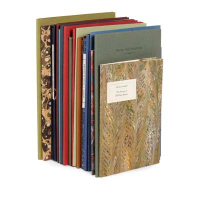 Crotch, Martha G. Memories of Frieda Lawrence. 1975, number 25 of 175 copies, original cloth-backed marbled boards, slipcase; Fuller, Roy The Joke Shop Annexe. 1975, one of 115 copies, signed by the author, original brown wrappers; Different Aspects. Frederick William Rolf & The Foreign Office. 1976, number 69 of 125 copies, original green wrappers, a few light marks to upper cover; Houseman, A.E. Fifteen Letters to Walter Ashburner. 1976, number 11 of 125 copies, original blue wrappers; Rolfe, Frederick Frederick Rolf and The Times 4-12 February 1901. 1977, number 90 of 175 copies, original brown wrappers; Hardy, Thomas The Poetry of William Barnes. 1979, number 27 of 95 copies, original marbled wrappers; Jamal, Mahmood Buddha's Death. 1979, limited to 95 copies, original marbled wrappers; Borrow, George A Journey to Eastern Europe in 1844. 1981, number 109 of 140 copies, original green wrappers; Ricketts, Charles Letters... to 'Michael Field'. 1981, number 33 of 145 copies, original green wrappers; Bowes Lyon, Lilian Uncollected Poems. 1981, number 12 of 95 copies, original marbled wrappers; From the Nineties. Some Translations of Baudelaire & Verlaine. 1982, number 29 of 95 copies, original green wrappers; Weeks, Donald Frederick William Rolfe, the 1903 Conclave. 1982, number 19 of 110 copies, original blue wrappers; Symons, A.J.A. A.J.A. Symons to Wyndham Lewis. 1982, number 31 of 121 copies, original marbled wrappers; Borrow, George Letters to John Hasfeld. 1982, number 43 of 140 copies, original brown wrappers; Thomas, Edward A Sportsman's Tale. 1983, number 47 of 125 copies, original green wrappers; Stoker, Bram The Dualitistis. 1986, number 76 of 125 copies, original red wrappers; Blackwood, Algernon A Mysterious House. 1987, number 28 of 125 copies, original blue wrappers; Gray, John Old Gough. 1990, number 28 of 75 copies, original blue wrappers; Gissing, George A Freak of Nature or Mr. Brogden. 1990, number 19 of 110 copies, original marbled cloth; Anderson, Alan The Tragara Press 1979-1991, a Bibliography. 1991, number 13 of 70 copies, original red wrappers (20)