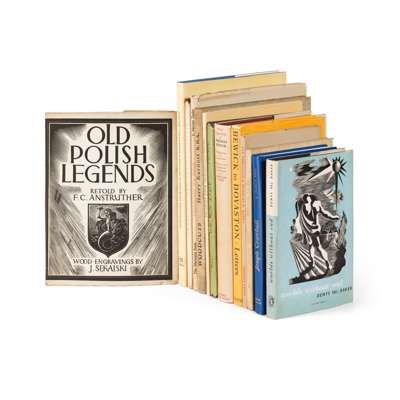 Felver, C.S. Joseph Crawhall, the Newcastle Wood Engraver. 1972, original cloth; Williams, Gordon Bewick to Dovaston. Letters 1824-1828. 1968, original boards, dustwrapper; Stone, Reynolds Wood Engravings of Thomas Bewick. 1953, with Prospectus loosely inserted, dustwrapper; Garrett, A. Wood Engravings and Drawings of Iain Macnab. 1973, dustwrapper;Taylor, E. Mervyn Engravings on Wood. The Mermaid Press, 1957, inscription from Joan & Maurice Patience, dustwrapper; Church, R. Green Tide. 1945, illustrations by C.F. Tunnicliffe, dustwrapper slightly frayed; Esslemont, David Sixteen Contemporary Wood Engravers. Newcastle, 1982, original wrappers; Baker, D.V. Worlds Without End. 1945, wood engravings by Biro, dustwrapper; Marks, H.H. Pax Obbligato. The Cresset Press, illustrations by John Farleigh, original cloth, dustwrapper; Ould, Charles Eve and Lilith. Geneva, 1942, limited to 410 copies, this one number 16 of 25 signed and with an extra suite of plates signed by the artist, 10 woodcuts by Robert Hainard, original cloth; Anstruther, F.C. Old Polish Legends. 1945, wood-engravings by J. Sekalski, original wrappers lightly dust-soiled; Kernoff, Harry Woodcuts. Dublin, 1942, number 153 of 22 copies signed by the artist, original cloth slightly discoloured; National Book League Wood-engraving in modern English Books. 1949, original wrappers slightly discoloured; Benet, S.V. Johnny Pye and the Fool-Killer. Glasgow, 1940, wood engravings by Lennox Paterson, original cloth, dustwrapper slightly frayed (14)