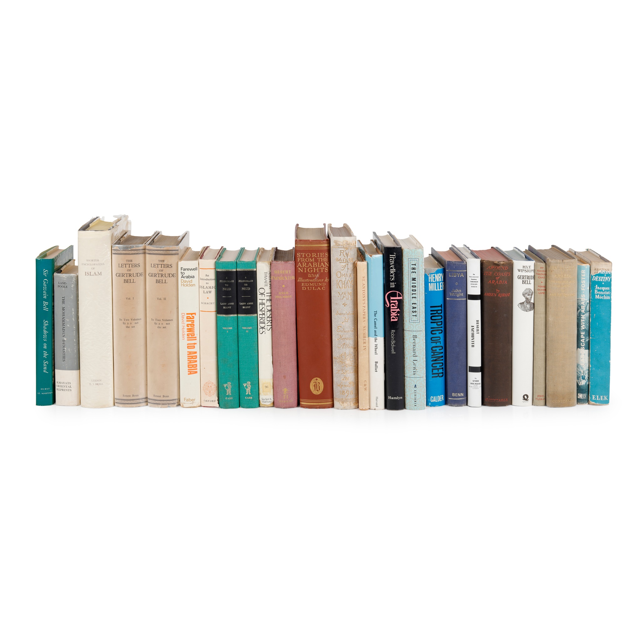 Salvin, Kenneth and Julie The Tvareg. London: Gentry Books [1973]; Stark, Freya A Winter in Arabia. London, Albemarle Street [1940]; Dickson, H.R.P. Kuwait And Her Neighbours. London: George Allen & Unwin LTD [1956]; Meulen, Van Der Aden To The Hadhramut. London: John Murray [1947]; Meulen, D.Van Der, Wissmann, H. Von Hadramaut Some of its Mysteries Unveiled. Leyden- E.J.Brill Ltd, 1964; Farago Ladislas The Riddle of Arabia, London Robert Hale Limited; Stark, Freya The Zodiac Arch. London: John Murray; Stark, Freya The Valleys of the Assassins: London: John Murray [1947]; Ingrams, Harold Arabia And The Isles. London: John Murray [1942]; Raswan, C.R The Black Tents of Arabia. London: Hutchinson & Co Ltd [1935]; and 43 others