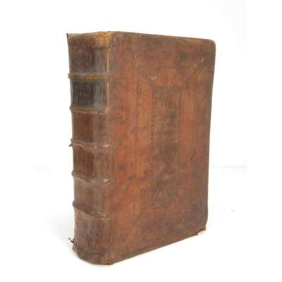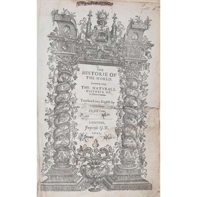 London: G.B. [George Bishop], 1601. First edition in English, folio, 2 volumes bound as one, slightly later panelled calf, with the ownership inscription of Roger Moodie to the title-page and annotations throughout in an early hand, lacking blanks, several initial and final leaves (also pp.463-4) with marginal wear and tears resulting in loss to text, light but noticeable dampstaining throughout, some worming and rubbing to covers [ESTC S94749]