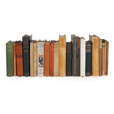 Buchan, John The History of the South African Forces in France. 1920, first edition, original cloth; Caine, Hall The Master of Man. 1921, first English edition, dustwrapper; [Grant, Duncan] Some Contemporary English Artists. 1921, first edition, dustwrapper by Duncan Grant, stitching very weak, lightly soiled; Masefield, John The Dream. [1922], limited to 750 copies, illustrated by Judith Masefield, number 607 signed by John and Judith Masefield, original cloth-backed boards, glassine dustwrapper; Bottomley, Gordon King Lear's Wife. 1922. Second edition, inscribed to J. Craig Annan, original cloth, spine slightly faded; Turner, W.J. Landscape of Cytherea. 1923, number 26 of 99 copies signed by the author, original quarter cloth; Holtby, Winifred Anderby Wold. 1923, First edition, original black cloth; Bennett, Arnold Don Juan de Marana. 1923, Privately Printed, number 740 of 1000 copies signed by the author, original paper-backed boards somewhat stained; Moore, T. Sturge Judas. 1923, first edition, original pictorial boards, slightly rubbed; Burroughs, Edgar Rice. Tarzan and the Golden Lion. 1924, First British edition, original salmon cloth; Powys, T.F. Mark Only. 1924, First edition, fine dustwrapper; Huxley, Aldous Selected Poems. 1925, original pictorial boards, rubbed; Burnet, I. Compton Pastors and Masters. 1925. First edition, dustwrapper; Hudson, Stephen Myrtle. 1925. First edition, presentation copy inscribed on half-title, original cloth, lacks front free endpaper; Davies, W.H. Later Days. 1925, number 8 of 125 copies signed by the author, original cloth, covers stained; Richardson, Henry H. The Way Home. 1925, first edition, original cloth; Bates, H.E. The Last Bread. 1925, first edition, signed by the author, original wrappers; Wells, H.G. The Open Conspiracy. 1928, 2nd impression, McKnight Kauffer dustwrapper clipped, owner's name and address on endpaper, dustwrapper slightly discoloured; Sitwell, Edith Rustic Elegies. 1927, dustwrapper; Zola, Emile L'Assomoir, translated by Arthur Symons. 1928. number 800 of 1000 copies signed Symons, original paper-backed boards, uncut, boards discoloured, lower joint cracked; Guedalla, Philip Bonnet and Shawl. New York, 1928, signed on half-title, number 152 of 571 copies, slipcase; Galsworthy, John. A Rambling Discourse. 1929, first edition, number 134 of 400 copies signed by the author, original boards, spine faded; Galsworthy, John A Modern Comedy. 1929, number 837 of 1030 copies signed by the author with quote, original white ?pigskin; Galsworthy, J. Forsyte Saga. 1922, first edition, original green cloth (24)