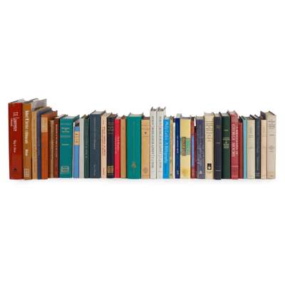 O' Brien, P. T.E. Lawrence, a Bibliography.2000, dustwrapper; Mitham, P.J. Robert W. Service, a Bibliography. 2000, dustwrapper; Jessop, T.E. A Bibliography of David Hume and of Scottish Philosophy. 1938, wrappers; Mason, S. Bibliography of Oscar Wilde. reprint edition; Tarr, R.L. Thomas Carlyle, a descriptive Bibliography. 1989; Shepherd, R.H. The Bibliography of Coleridge. 1970, limited to 150 copies; Higginson, F.H. A Bibliography of the Works of Robert Graves. 1966; Hoy, P.C. A Checklist of Writings about Edwin Muir. 1971; Mellown, E.W. Bibliography of the Writings of Edwin Muir, 1970; Russell, N. A Bibliography of William Cowper to 1837. 1963; Denson, A. Printed Writings by George W. Russell. 1961; Sagar, K. Ted Hughes, a Bibliography 1946-1980, 1983; Ayling, R. and M.J. Durkan. Sean O'Casey. 1978; d'Arch Smith, T. A Bibliography of the Works of Montague Summers. 1964; Pound, O.S. Wyndham Lewis, a Descriptive Bibliography. 1978; Penzer, N.M. An Annotated Bibliography of Sir Richard Francis Burton. Reprint limited to 225 copies; Crane, J.St. C. Robert Frost, a Descriptive Catalogue. 1974; West, R.C. Tolkien Criticism. 1972; Bloomfield, B.C. Philip Larkin, a Bibliography. 1979; Todd, W.B. Bibliography of Edmund Burke. 1982; Handley-Taylor, G. John Masefield, a Bibliography. 1960; Gilcher, E. A Bibliography of George Moore. 1970; Courtney, W.P. A Bibliography of Samuel Johnson. 1984; Wise, T.J. A Bibliography of ... Baron Byron. 1972, 2 volumes, dustwrappers; McKerrow, R.B. An Introduction to Bibliography for Literary Students. 1965; Dyer, I.W. A Bibliography of Thomas Carlyle's Writings. 1968; Cutler, B.D. Modern British Authors. their First editions. 1930; Morris, B. John Cleveland, a Bibliography. 1967; Baynes, N.H. Bibliography of the Works of J.B. Bury. 1929, library stamp on title; Maud, R. Dylan Tomas in Print. 1968; Rolph, J.A. Dylan Thomas, a Bibliography. 1956, dustwrapper; Bareham, T. A Bibliography of George Crabbe. 1978; McDonald, E.D. A Bibliography of the Writings of Norman Douglas. 1927, and 6 paperbacks (38)