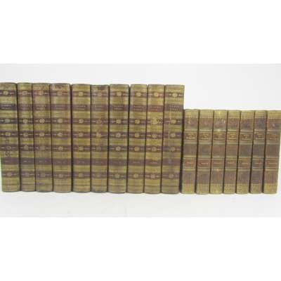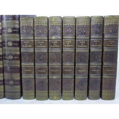 The works. London, 1803. 10 volumes, 8vo, engraved portrait, contemporary diced calf, spines gilt Lockhart, J.G. Memoirs of the life of Sir Walter Scott. Edinburgh, 1837. First edition, 7 volumes, 8vo, engraved portrait, facsimile letter end of vol. 1, contemporary quarter calf, spines gilt; and 3 others relating to Scott (20)
