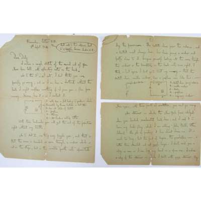 Note: An interesting letter which gives great insight into the inner workings of a literary genius. In part: "Dear Daly, I enclose a rough sketch of the second act of You Never Can Tell, with explanatory notes on the back. As to the 3rd and 4th acts, I don't think you can possibly go wrong; and as I am here in Scotland without the book I might misplace something if I gave you a plan from memory. However, here it is as I recollect it...." A full transcript is available on request.