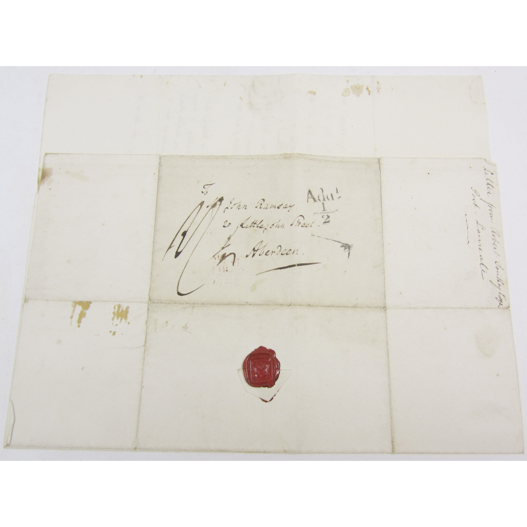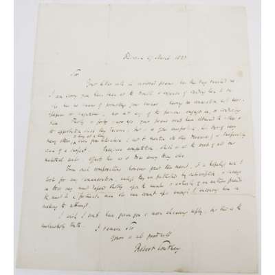 Autograph letter signed to John Ramsay (1799-1870), Aberdeen based poet and journalist, letter of discouragement to the prospective poet: "Thirty or forty years ago your poems would have obtained the notice & approbation they deserve", one page, 4to, integral address leaf, Keswick, 27 March 1833