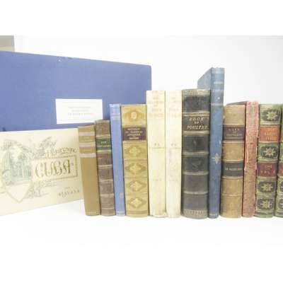 The wildfowl paintings of Henry Jones. 1987. Oblong folio, number 255 of 350 copies signed by the author, mounted coloured plates, blue half leather, original cloth box; Wright, L. The new book of poultry. Cassell, [n.d.], 4to, coloured plates, half calf; Bing, S. Artistic Japan. 1891. Folio, vol. 6 only, plates, some coloured, original half cloth; Collingwood, W.G. The life and work of John Ruskin. 1893. 2 volumes, 4to, number 20 of 320 copies, quarter vellum, bindings soiled; Lowe, E.J. Our native ferns. 1865, 2 volumes, 8vo, coloured plates, half calf; Seyffert, O. Dictionary of classical antiquities. 1899. 4to, contemporary calf gilt; Gems from the poets. 1860. Large 8vo, colour printed title and wood block plates by F.A. Lydon, original cloth, rebacked, worn; Fruits of enterprise exhibited in the travels of Belzoni in Egypt and Nubia. 1822. 12mo, 24 coloured plates, red morocco-backed boards, worn; Millet, F.D. The Danube. 1893, presentation copy from the author, original cloth; Smith, E. The compleat housewife. 1758. 16th edition, frontispiece & 2 plates only, calf, soiling, cover detached; Frazer, Mrs The practice of cookery, pastry, pickling, preserving &c. Edinburgh, [c.1791], 12mo, 2 engraved plates, cloth, date excised from title; Macdiarmid, Hugh Selected poems, edited by R. C. Saunders. [c.1945], Presentation copy to Sadie Starrett, original cloth-backed boards, binding soiled; and 20 others; sold not subject to return (34)