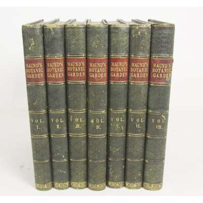 The Botanic Garden, London: Baldwin and Cradock, [1825-1851], volumes 1-VII (only of 13), 4to., additional engraved title pages and 169 hand-coloured plates, contemporary half calf, one text page in volume II torn with loss not affecting text, one marginal tear to plate 133 in volume VI not affecting image, volume VII contains 5 later uncoloured lithographed plates laid down on the rear endpapers, some spotting and off-setting, extremities lightly rubbed, corners bumped. [Nissen 2222]