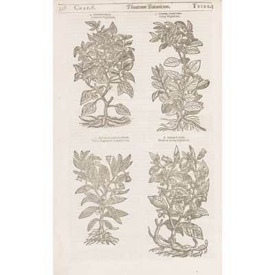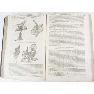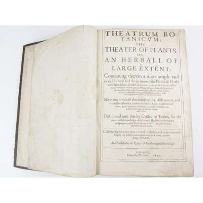 Note: A good copy of Parkinson's Theatrum Botanicum, with 1,688 pages of text and 2700 woodcut illustrations, describing over 3,800 plants. It was the most complete and beautifully presented English treatise on plants of its day and the first work to describe 33 native plants, 13 of which grew near Parkinson's Middlesex home. ESTC S121875; STC 19302; Hunt 235