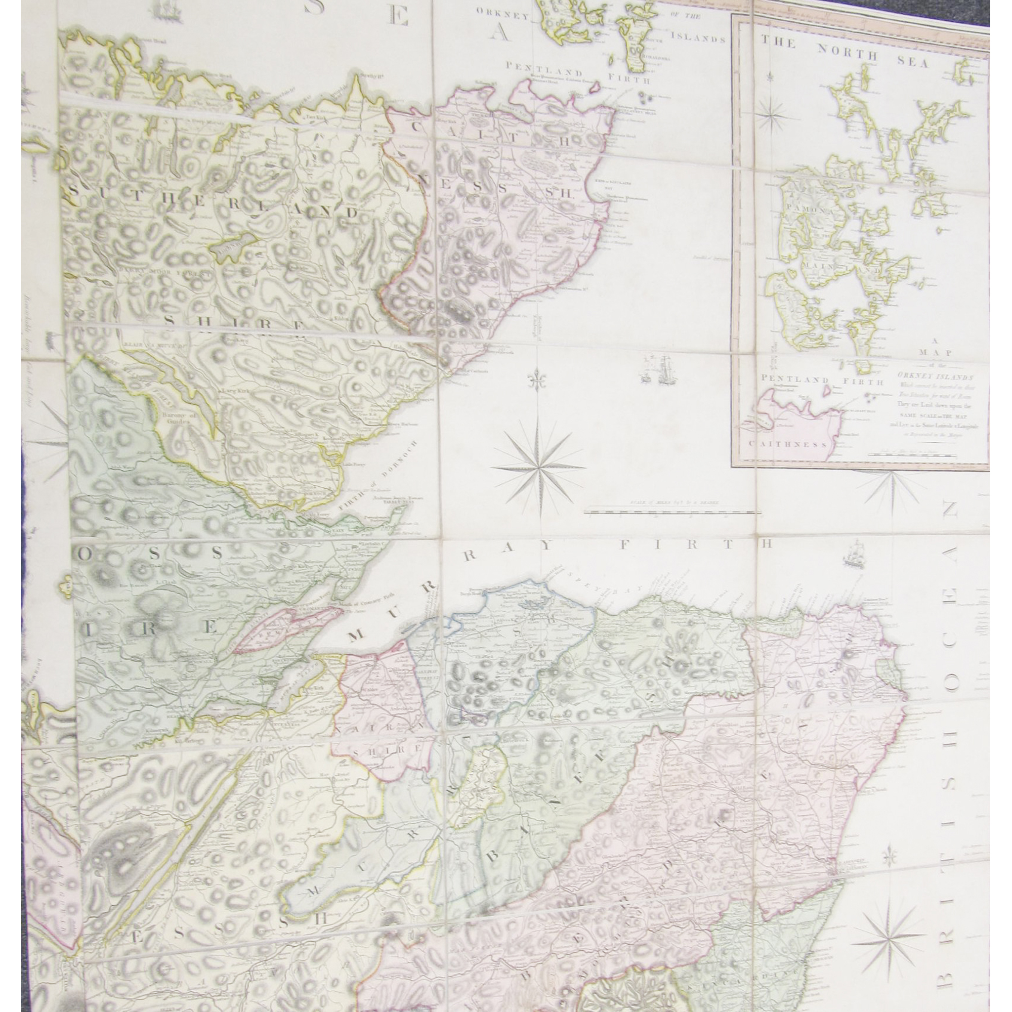 Scotland drawn and engrav'd from a series of angles and astronomical observations. Edinburgh: Thomas Brown/ London: William Faden, 1800. 4 linen-backed sheets, each c.82 x 91.5 cm, each with 18 sections, hand-coloured, original box with paper label to upper cover (title in manuscript), a little browning, box rubbed and worn