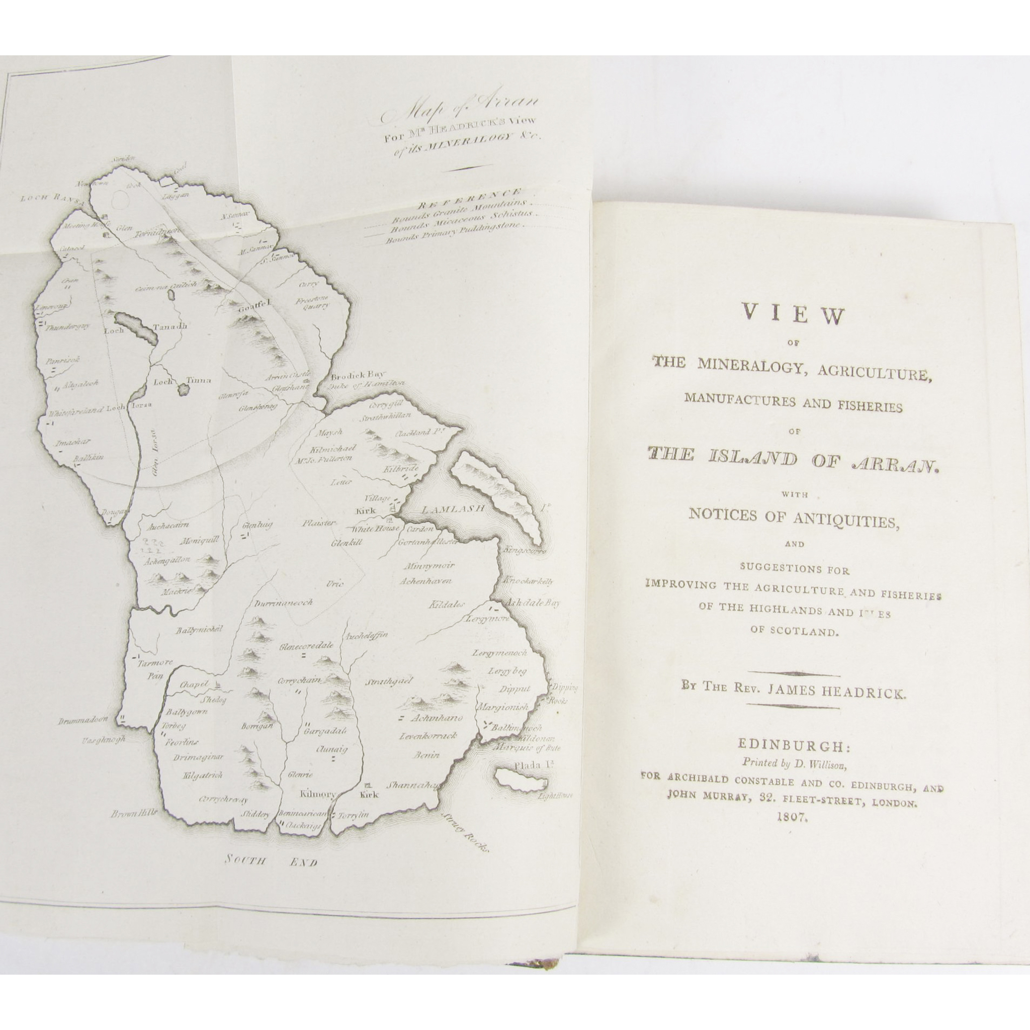 View of the mineralogy, agriculture, manufactures and fisheries of the Island of Arran, Edinburgh: Archibald Constable and Co., 1807, 8vo, folding map frontispiece, contemporary blind tooled speckled calf, gilt, some off-setting and very light soiling, extremities lightly rubbed, corners bumped.