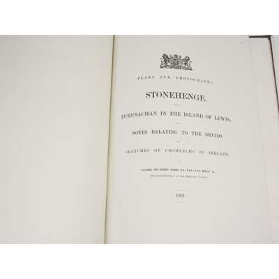 Plans and photographs of Stonehenge and of Turusachen. [Southampton: Ordnance Survey Office], 1867. Folio, 11 zincographed plans and plates, and 9 mounted albumen prints, original cloth