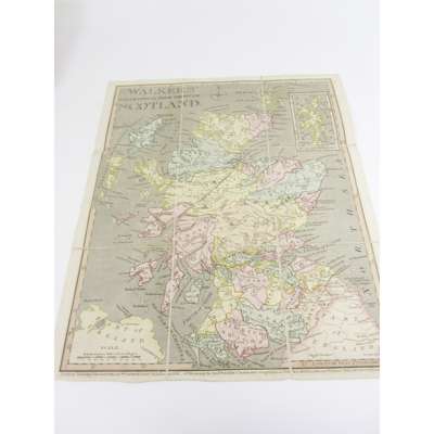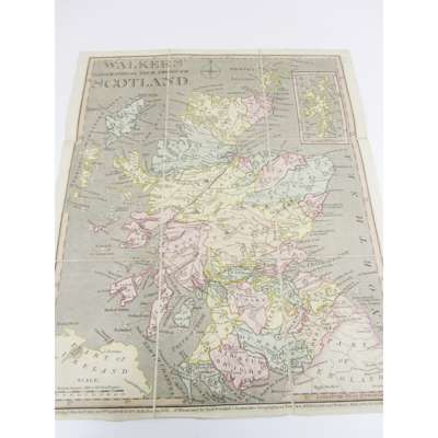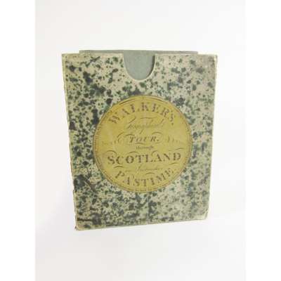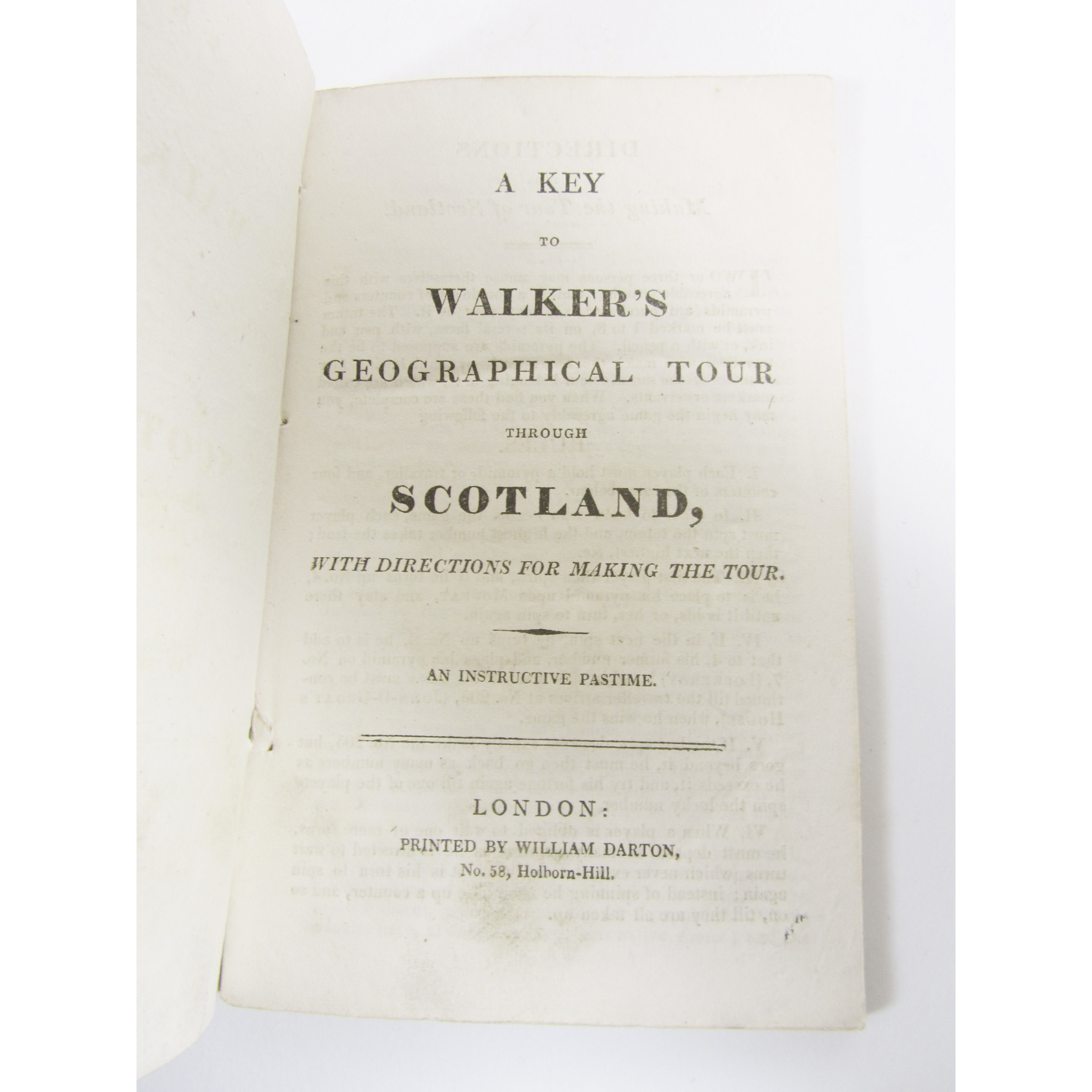 Walker's geographical tour through Scotland, an instructive pastime. London: W. Darton, 1812. 8vo booklet in original boards containing instructions for playing a game involving the map and information about various locations in Scotland; hand-coloured, linen-backed folding map, 50x41cm; both contained in original box with label to upper cover, and publisher's label to lower cover