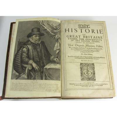 The Historie of Great Britaine under the Conquests of the Romans, Saxons, Danes and Normans. London: George Humble, 1632. Third edition, folio, portrait trimmed and laid-down onto A1 (blank), contemporary panelled calf rebacked with modern spine, bookplate, A5 verso repaired, some occasional small tears and light dampstaining