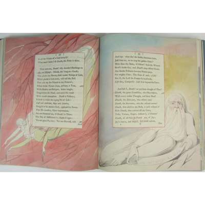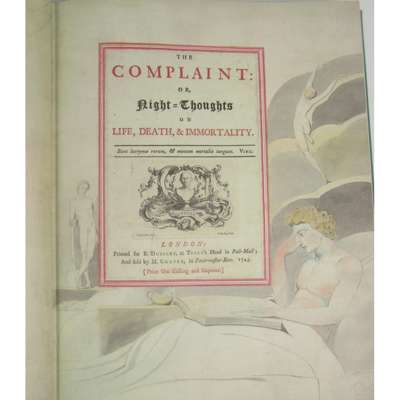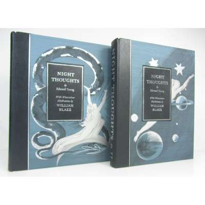 The Complaint, or Night Thoughts, on Life, Death & Immortality. The Folio Society, 2005. 2 volumes, folio (facsimile), and 1 volume, 8vo (text), number 233 of 1000 copies, coloured throughout, blue morocco backed pictorial cloth with designs by David Eccles after Blake, accompanying text volume original cloth, all within folding blue cloth box with green morocco label
