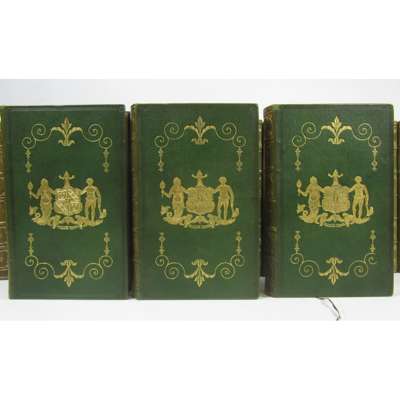 Waverley Novels. Edinburgh: Robert Cadell, 1829. 48 volumes, & Poetical Works, 12 volumes, together 60 volumes, 8vo, engraved frontispieces and title pages, fine bright green morocco gilt incorporating Sir Walter Scott's coat-of-arms, gilt edges, spines lightly faded