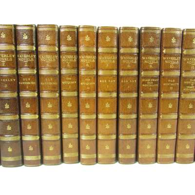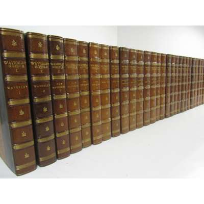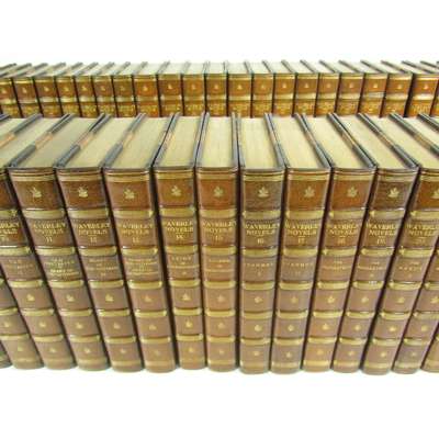 The Works, comprising Waverley Novels, 48 vols., 1829-33; Waverley Anecdotes, 2 vols., 1833, Poetical Works, 12 vols., 1833-34; Miscellaneous Prose Works, 28 vols., 1834-36 and Lockhart's Life of Scott, 10 vols; Edinburgh, W. Cadell, 1829-48. Together 100 volumes, 8vo, engraved frontispieces and additional vignette titles, early 20th century green half morocco by Zaehnsdorf, spines gilt, top edges gilt, spines slightly faded, fine set
