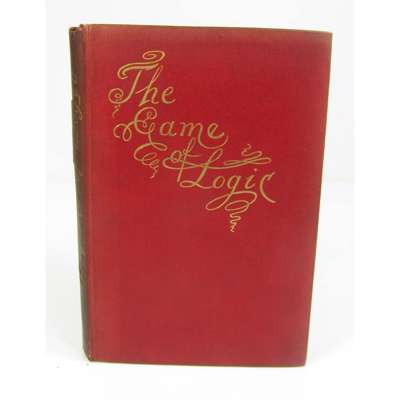 The Game of Logic. London: Macmillan and Co., 1886-7. 8vo, original red cloth gilt, bookplate and blind-stamp, initial pages loose, tear to spine, with instruction card and 9 grey and pink counters in original printed envelope, closed tear to envelope [book dated 1887, card and envelope dated 1886]