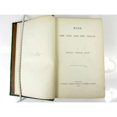 Wine, the Vine and the Cellar. London: Longman [&c.], 1863. First edition, 8vo, illustrations, original pictorial green cloth, recased