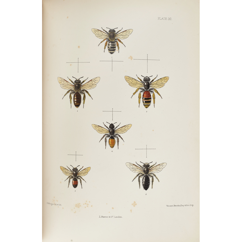 The Hymenoptera Aculeata of the British Islands. London: L. Reeve, 1896. First edition, 8vo, 54 lithographed plates, 51 hand-coloured, contemporary blue half morocco, spine gilt, t.e.g., Castlecraig Library bookplate, rubbed