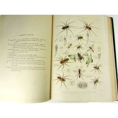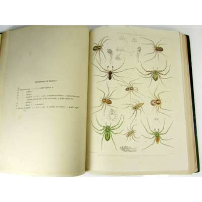A History of the Spiders of Great Britain and Ireland. London: The Ray Society, 1861. Folio, 29 hand-coloured engraved plates with descriptive text on guards, recent green half morocco and green watered cloth, spine gilt, raised bands, new endpapers