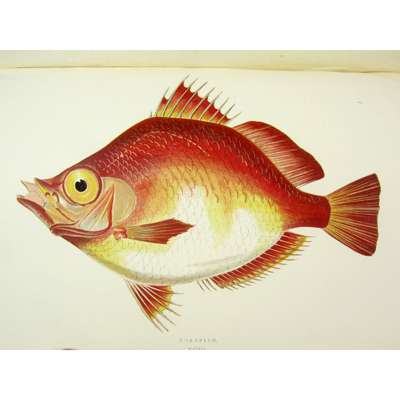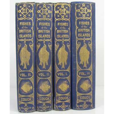 A History of Fishes of the British Islands. London: Groombridge, 1864-65. 4 volumes, 8vo, 252 coloured plates, original blue pictorial cloth gilt, tissue guards, volume 4 rebound with original spine and covers laid down, other volumes rubbed