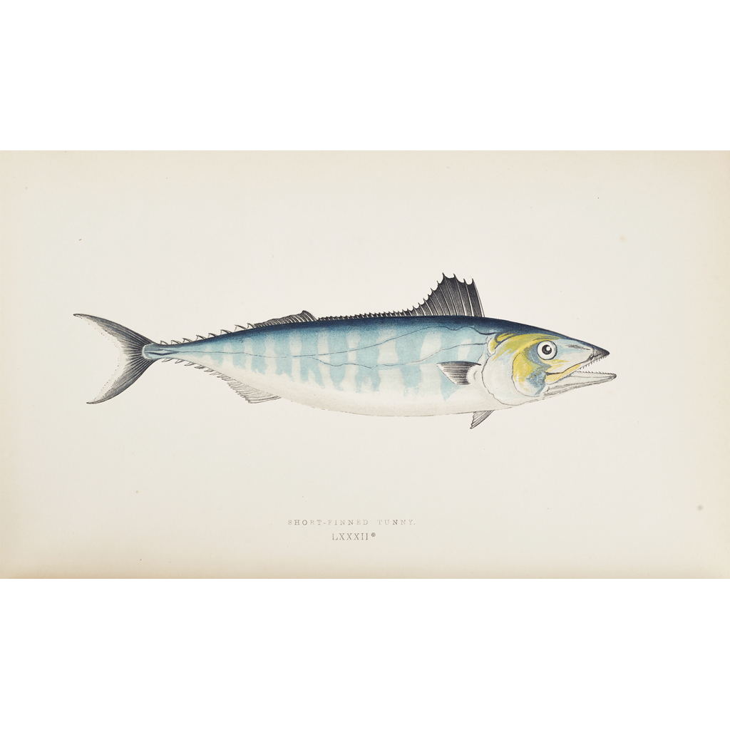 A History of Fishes of the British Islands. London: Groombridge, 1862-65. First edition, 4 volumes, 8vo, 252 colour plates, 1 uncoloured plate, original decorative blue cloth gilt, occasional light spotting, slightly rubbed