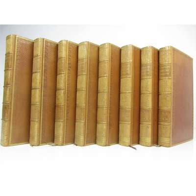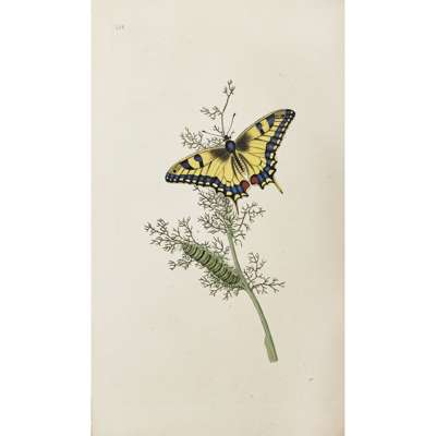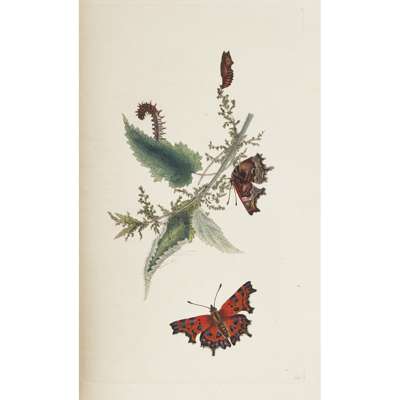 The Natural History Of British Insects; Explaining Them In Their Several States, With The Periods Of Their Transformation, Their Food, Oeconomy, &c. Together With The History Of Such Minute Insects As Require Investigation By The Microscope. London: For the Author, and for F. and C. Rivington 1792-1813. Combination of First and Second Edition, 16 volumes bound in 8, 8vo., (235 x 145mm.) 576 plates (568 hand coloured), contemporary diced calf gilt, spines with raised bands, morocco labels lettered in gilt, double gilt rules and blind decorative borders to both upper and lower boards, marbled endpapers, all silk markers present as are all tissue guards, a very attractive set