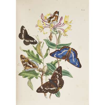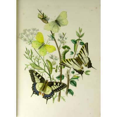 British Butterflies and their Transformations. London: W. Smith, 1848. First edition, 4to., additional hand-coloured lithographed title and 42 hand-coloured lithographed plates, tissue guards, contemporary half calf, green morocco label, armorial bookplate of Richard Fremlin of Wateringbury, occasional slight spotting, lightly rubbed