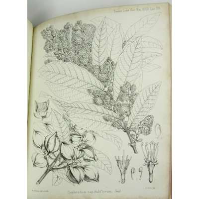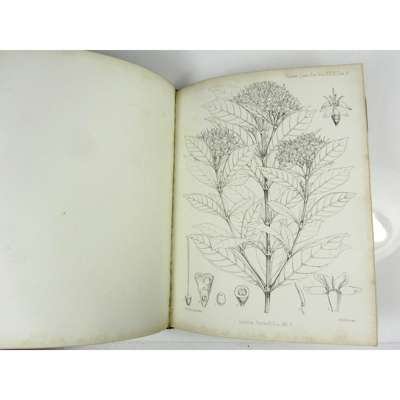 Botany of the Speke and Grant Expedition. London: Taylor and Francis, 1872. Presentation copy inscribed "to R. Cheyne Es. with kind regards from J.A. Grant, late Bengal N.I., 13 June 1872", 4to., map, 136 lithographed plates, contemporary half calf, spine gilt, lower joint repaired, old leaves from Matlock Bank stuck onto front endpaper, edges slightly rubbed