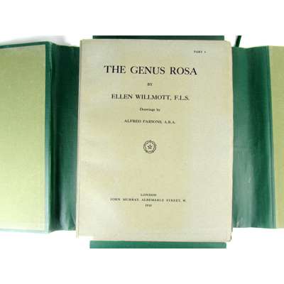 The Genus Rosa. London: John Murray, 1914. First edition, 2 volumes, 4to., 132 chromolithographed plates, 15 uncoloured plates, illustrations, all after Alfred Parsons, original upper wrappers bound in at end, original green quarter morocco, t.e.g., others uncut