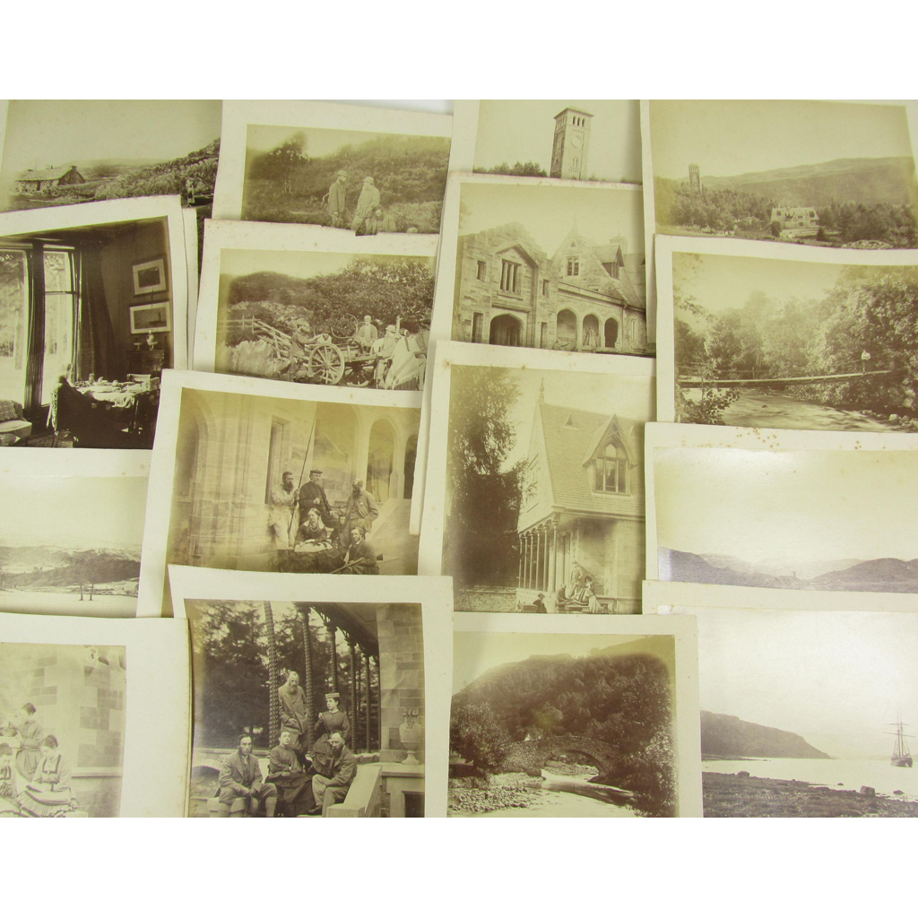 19 albumen prints of Ardtornish Tower, Achranich, Kinlochaline Castle, Kinlochaline, members of Astley & Sellar family at Ardtornish Tower, Loch Aline, c. 18 x 22cm., mounted on card