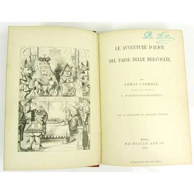 Le Aventure d'Alice nel Paese Delle Meraviglie. London: Macmillan & Co., 1872. First Italian edition published in London, 8vo, original cloth, stamped ownership signature to title-page, cloth on spine torn