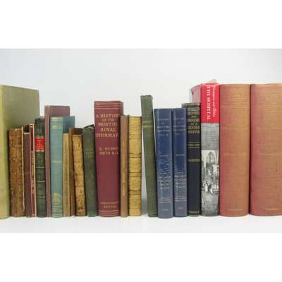 Society for Bettering the Condition and Increasing the Comforts of the Poor. The Reports of. London: for the Society, 1789. Volume 1 only, 8vo, contemporary calf, rubbed; Moore, Norman The History of St. Bartholomew's Hospital. 1918. 2 volumes, 4to, original red cloth gilt, spines faded; Macmichael, William The Gold Headed Cane. 1828. Second edition, 8vo, original cloth, rubbed; Howard, John The Plan adopted by the Governors of the Middlesex Hospital for the Relief of Persons afflicted with Cancer. London, 1792. 8vo, later boards, red morocco label, uncut; Comrie, J.D. History of Scottish Medicine. 1932. 2 volumes, 8vo, illustrations, original blue cloth gilt; Smith, G.M. A History of the Bristol Royal Infirmary. 1917. 8vo, original maroon cloth; Champney, T. Medical and Chirurgical Reform. 1797. 8vo, contemporary calf, Norwich & Norfolk Medical Book Society stamp to title, neatly rebacked; Seward, Anna Memoirs of the Life of Dr. Darwin. 1804. 8vo, half calf, rubbed; Brownlow, John Memoranda; or Chronicles of the Foundling Hospital. 1847. 8vo, frontispiece, 8 plates, original cloth, plates discoloured, and 11 others (22)