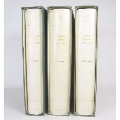 The Catalogue of the Sassoon Chinese Ivories. London: Country Life, 1950. 3 volumes, folio, limited edition, number 135 of 250 copies, signed by both Sir Victor Sassoon and S.E. Lucas, coloured frontispiece and 224 plates, original half vellum gilt, t.e.g., uncut, in cloth slipcases, a fine set