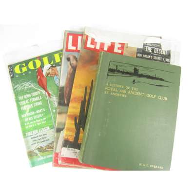 A History of the Royal & Ancient Golf Club. St Andrews from 1754-1900. Edinburgh: W. Blackwood, 1907. First edition, 4to., plates, original pictorial green cloth gilt, with free endpaper (loose) inscribed "To Dr Paton with Mr Everard's very best wishes, June 1911", binding lightly marked; and 2 issues of Life Magazine "Ben Hogan Tells His Secret" (1954-55), and Golf Magazine, June 1962, in sellophane wrappers (4)
