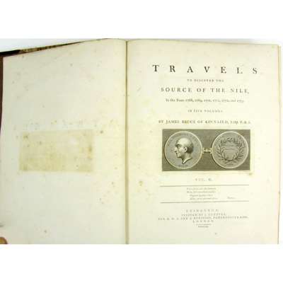 Travels to Discover the Source of the Nile. Edinburgh: G.G.J. and J. Robinson, 1790. First Edition, 5 Volumes, 4to., 69 plates and 3 folding maps, bookplate in first volume of Marshall Laird, modern half calf retaining original marbled boards, foxing to some pages (5)