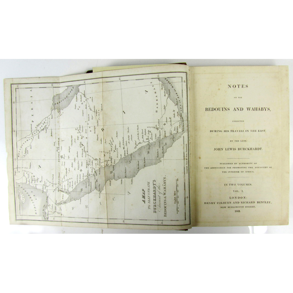 Notes on the Bedouins and Wahabys, collected during his Travels in the East. London: H. Colburn & R. Bentley, 1831. 2 volumes, 8vo, folding map frontispiece, contemporary half calf, new endpapers, occasional slight spotting and soiling, upper joints slightly split