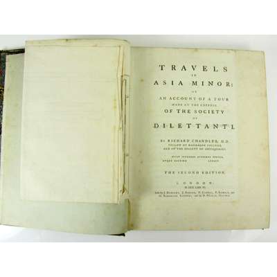 Travels in Asia Minor. London: J. Dodsley [& others], 1776. Second edition, 4to., folding map, errata leaf, contemporary calf, map torn without loss, occasional spotting, rubbed, corners bumped
