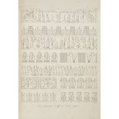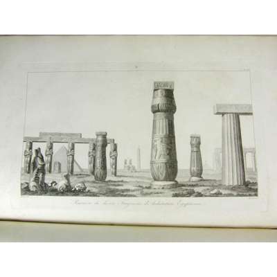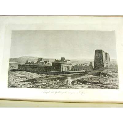 Egypt Delineated, in a Series of Engravings, Exhibiting the Scenery, Antiquities, Architecture, Heiroglyphics, Costume, Inhabitants, Animals &c. of that Country, Selected from the Celebrated Work of Vivant Denon. London, Robert Thurston. 1826. Large Folio, (330 x4 77mm), engraved frontispiece portrait, 110 engraved plates, plans & maps (several folding, 1 large, 7 double page of which 4 with short tear at fold), 3 plates shaved touching text, later half morocco over maroon cloth boards, neatly rebacked preserving original spine, bookplate of H.E. Barker, corners rubbed, covers a little scuffed and marked, frontispiece with marginal dampstain