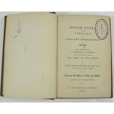 Rough Notes of the Campaign in Sinde and Affghanistan, in 1838-9. [London]: J.M. Richardson, 1840. First edition, 8vo, 2 folding plans, "Afghan Legation London Library" stamp to title, rebacked retaining most of original spine, faded
