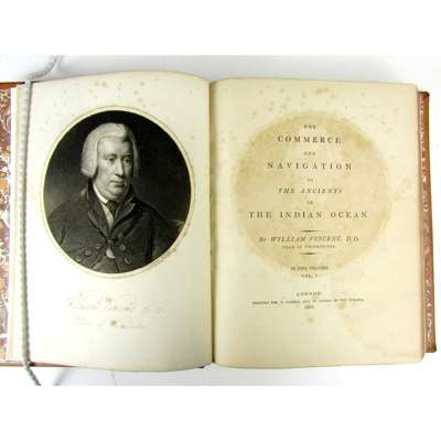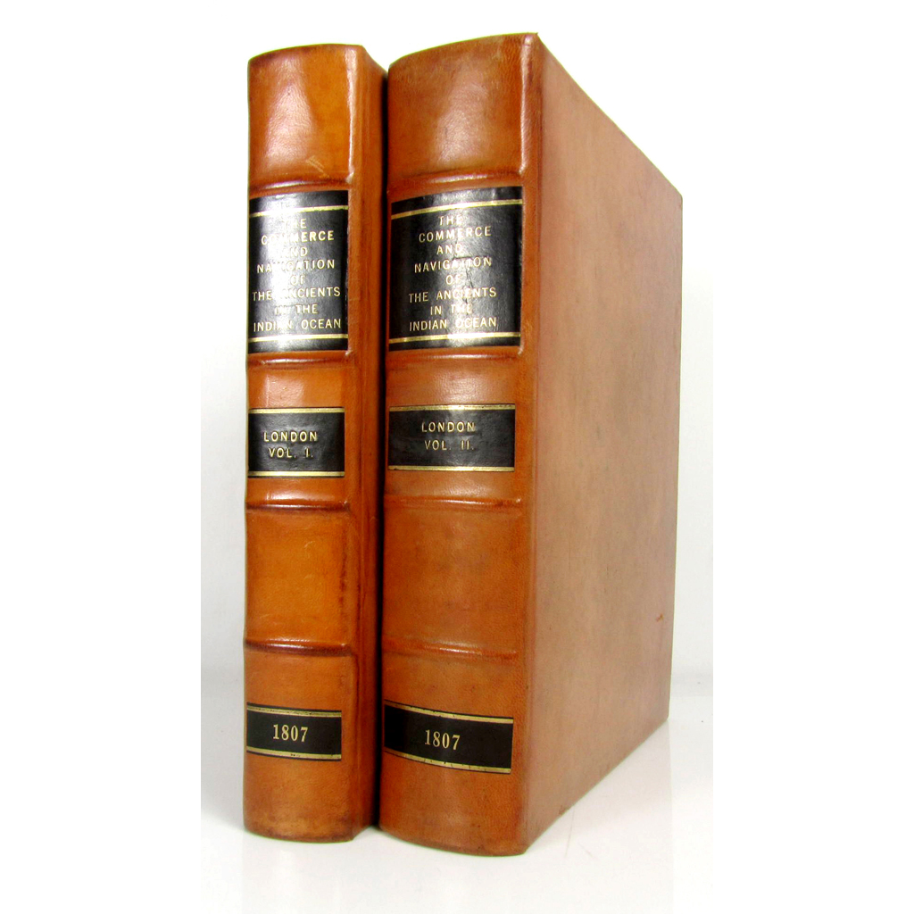 The Commerce and Navigation of the Ancients in the Indian Ocean. London: T. Cadell & W. Davies, 1807. First edition, 2 volumes, 4to., 14 maps (12 folding), 2 frontispieces, 3 plates, 2 folding tables, modern calf, black morocco labels, offsetting from some plates and maps, occasional spotting and browning