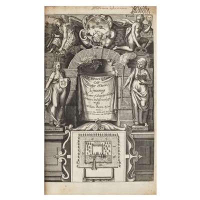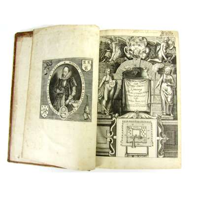 The Description of Leicester Shire, containing Matters of Antiquity, History, Armorye and Genealogy. London: John White, [1622]. Folio, engraved title, engraved portrait frontispiece, folding map by C. Saxton, coats-of-arms in text, eighteenth century panelled calf, a little light spotting, neatly rebacked, corners repaired