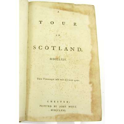 Travels in Scotland by an Unusual Route, with a Trip to the Orkneys and Hebrides. London, 1807. First edition, 2 volumes, 8vo, map and 29 plates, contemporary half calf, rubbed, two covers detached; Pennant, Thomas A Tour in Scotland. MDCCLXIX. Chester: J. Monk, 1771. 8vo, 18 engraved plates, text engraving on p. viii, contemporary calf, title slightly browned in margins, worn; M'Callum, H. and J. An original Collection of the Poems of Ossian, Orann, Ulin and other Bards. Montrose, 1816. 8vo, original boards, uncut, a few spots, head of spine with slight loss, one board detached; Gardyne, C.G. The Life of a Regiment: The History of the Gordon Highlanders. 1929. 2 volumes, 8vo, plates and maps, original green cloth gilt, one cover marked (6)