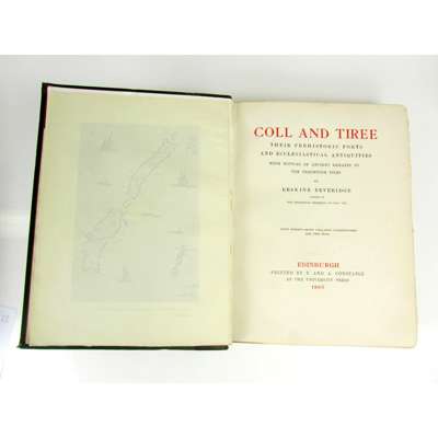 Coll and Tiree, their prehistoric forts and ecclesiastical antiquities. Edinburgh: T. and A. Constable, 1903. 4to, out-of-series copy of 300, folding map, plates, original quarter morocco gilt, some rubbing
