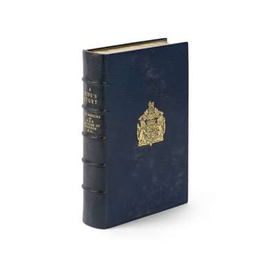 A King's Story, the Memoirs of H.R.H. the Duke of Windsor, K.G. London: Cassell and Company, 1951. 8vo, number 62 of 250 signed copies, blue morocco gilt with Royal crest to upper cover and gilt doublures by Sangorski & Sutcliffe, slipcase, a little soiling to covers