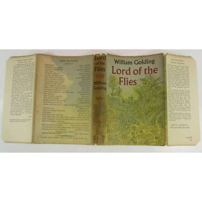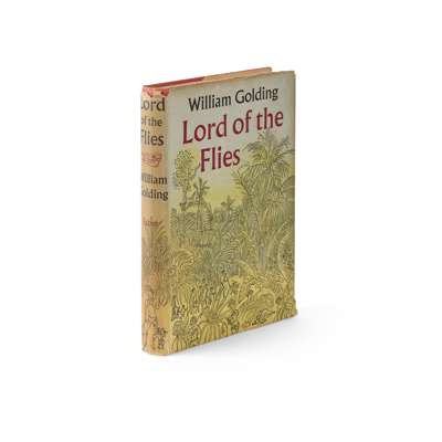 Lord of the Flies. London: Faber & Faber, 1954. First edition, 8vo., original red cloth, dustwrapper bit rubbed & frayed with slight loss at head of spine, several short tears, spine discoloured