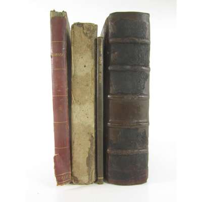 [A History of the World. London G. Lathun and R. Young, 1634.] Folio, with 'Minde the Front' leaf, contemporary calf, rebacked, lacking title-page, a few repairs; Pleyel, Ignace Six Sonatas for the Piano Forte or Harpsichord... London: Broderip & Wilkinson, [n.d., 1801?]; [bound with] [Idem] Three Grand Sonatas for the Piano-Forte or Harpsichord... select Scottish Airs. London: Bland & Weller, [n.d.]; [bound with] [Idem] Three Grand Sonatas for the Piano-Forte or Harpsichord... select Scottish Airs. London: Bland & Weller, [n.d.]; [bound with] [Idem] A Favourite Sonata for the Piano Forte... London: Preston, [n.d.]; [bound with] [Idem] A Grand Sonata for the Piano Forte... London: E. Riley, [n.d.]; Folio, contemporary red half morocco; Di Villanova, Francesco de Alberti Grande Dizionario Italiano-Francese... Bassano: Giuseppe Remondini e Figli, 1811. 4to., volume 2 only, contemporary tree calf; Masefield, John Philip the King. London: William Heinemann Ltd., 1927. 4to, number 263 of 360 signed copies, original cloth gilt; sold not subject to return (4)